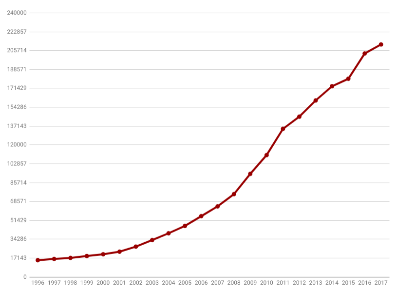 In just ten years, these Muslim countries went from publishing 64110 papers in 2007 to 211287 papers in 2017, growing by over three times.
