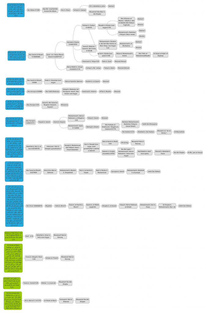 Below is a diagram of the result of my study, which includes all the hadiths I found with their chains: